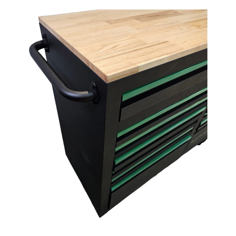 Dieser praktische Werkzeugwagen ist ideal für Garage, Werkstatt oder Heimwerker, die Wert auf Ordnung und Komfort legen. Die Schubladen gleiten leichtgängig auf Kugellagern und bieten viel Stauraum für Werkzeug. Dank der Rollen mit Bremsen lässt sich der Wagen leicht bewegen und steht stabil.